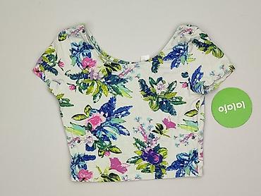 Bluzka damska CROPP, rozmiar S - Krótki top w kwiatowy wzór na czarnym tle - Dekolt w serek - Marszczenie z przodu z regulacją na troczki (możliwość dopasowania długości/przylegania) - Krótkie ręk...