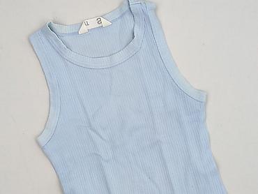 Jasnoniebieski top damski bez rękawów - Rozmiar: XS (metka “C”) - Fason: prosty, krótki top na ramiączkach, okrągły dekolt - Materiał: 50% poliester, 50% wiskoza – lekka, miękka i przewiewna dzian...
