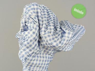 - Wzór: drobna kratka gingham w odcieniach błękitu i bieli