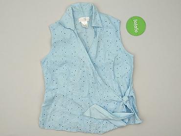 Bluzka damska kopertowa w cytryny - Krój: kopertowy z wiązaniem w pasie, dekolt V - Rękawy: długie z delikatną gumką przy mankietach - Wzór: niebieskie tło w żółte cytryny i plasterki - Materiał (...