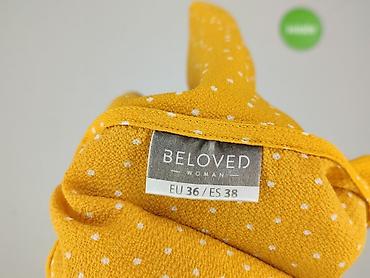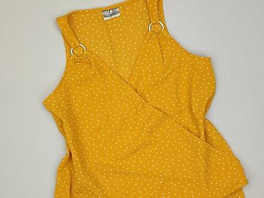 Top damski BELLOVED Woman - Model: bez rękawów, z kopertowym przodem (wrap) i ozdobnymi metalowymi kółkami przy ramiączkach - Kolor: intensywny żółty z drobnym białym nadrukiem w kropki - Rozmiar ...Rozmiar:
