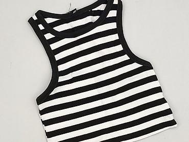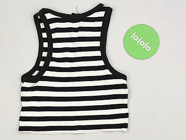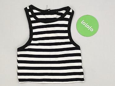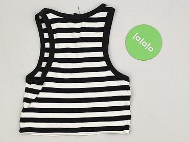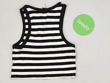 Damski top crop w paski - Fason: krótki top bez rękawów, z wyciętymi bokami i okrągłym dekoltem - Wzór: biało‑czarne, poziome paski - Materiał: prążkowana, elastyczna dzianina (miękka i rozciągliw...Rozmiar: