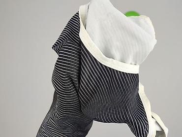 - Kolor: czarno‑szare, bardzo drobne paski; lamówki w kolorze ecru/kremowym