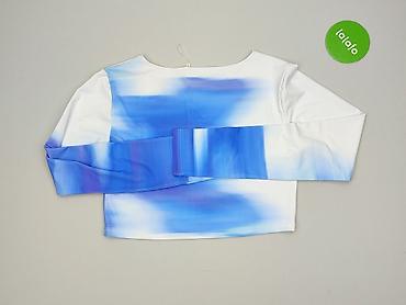 Bluzka damska Cropp, model: krótki crop top. - Rozmiar: 40 (na metce) - Fason: krótki, szeroki krój z luźnymi rękawami do łokcia - Dekolt: okrągły - Wzór/kolor: niebieski tie-dye w chmury - Materi...