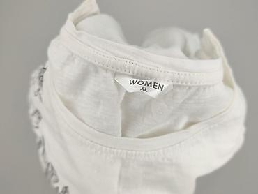 Biała koszulka na ramiączkach, rozmiar XL - Fason: top na cienkich ramiączkach, dekolt w kształcie łagodnego U - Materiał: 100% bawełna (metka) - Wzór: tłoczony/żakardowy motyw spiralno-kwiatowy z...