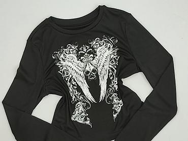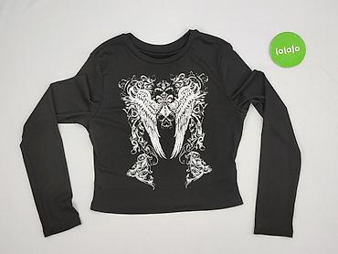 Czarny krótki top damski z długim rękawem - Fason: crop top, okrągły dekolt, długie rękawy zakończone szerokimi mankietami - Dół z elastyczną gumką – lekko marszczony, dobrze dopasowuje się do syl...Rozmiar: