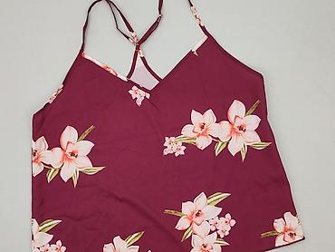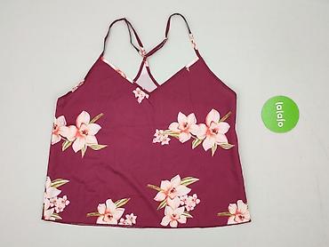Damska koszulka na ramiączkach – top z motywem tropikalnych kwiatów i liści - Rozmiar: XL (z metki) - Krój: lekko rozszerzany, na cienkich regulowanych ramiączkach - Dekolt: w kształcie litery V z...