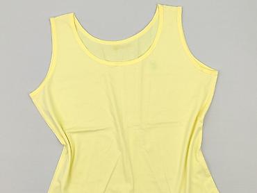 Żółty top damski bez rękawów - Rozmiar: 44 (na metce) - Fason: lekko taliowany, z marszczeniem pod biustem podkreślającym sylwetkę - Dekolt: łódkowy - Długość: do bioder - Materiał: cienka, miękka...