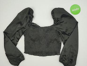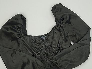 Czarny top damski HOUSE, rozmiar EU XS. - Krótki, dopasowany krój (crop top) - Długie rękawy z delikatnym marszczeniem przy mankietach - Dekolt kwadratowy - Marszczenia na przodzie i tyle - Szerok...