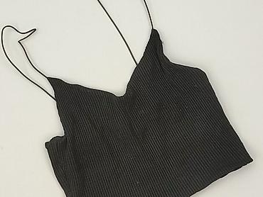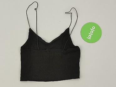 Czarny top damski XS - Fason: krótki, dopasowany, na ramiączkach wiązanych na kokardy - Dekolt: łódkowy - Tkanina: prążkowana, elastyczna - Skład: 95% poliester, 5% elastan (metka na zdjęciu) - Ko...