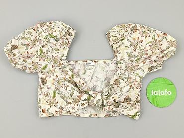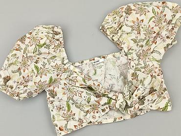 Bluzka damska CROPP, rozmiar S - Krótki top w kwiatowy wzór na czarnym tle - Dekolt w serek - Marszczenie z przodu z regulacją na troczki (możliwość dopasowania długości/przylegania) - Krótkie ręk...