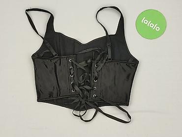 Czarny top damski XS/XXS – krótki, wiązany - Model: krótki top typu crop, bez rękawów, z zabudowanymi ramionami - Kolor: czarny - Zapięcie/wykończenie: dekoracyjne wiązanie z przodu w stylu gorset...