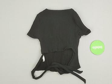 Czarny prążkowany top/bluzka damska FB Sister, rozmiar S - Fason: dopasowany, długość do pasa - Rękaw: długi, lekko rozszerzany przy nadgarstku - Dekolt: okrągły - Tył: wiązanie w pasie (dekoracyj...