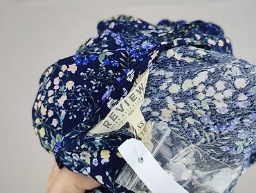 - Wzór: drobny, kwiatowy nadruk na granatowym tle (odcienie bieli, żółci, zieleni i niebieskiego)
