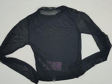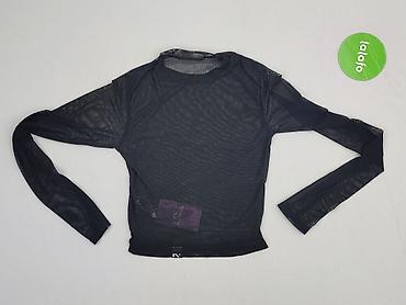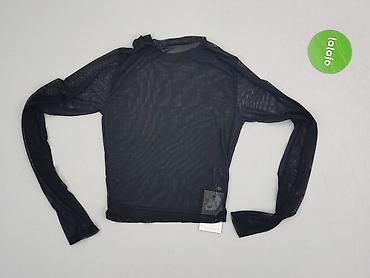 Czarny krótki top damski z długim rękawem, prążkowana dzianina, kopertowy dekolt V. - Rozmiar: XXS (na metce). - Materiał: 60% poliester, 32% bawełna, 8% elastan – elastyczny, miękki, dobrze dopa...Rozmiar:
