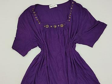 - Krój: luźna tunika z krótkim rękawem, rozszerzana do dołu; subtelne marszczenia po bokach