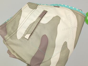Męskie szorty kąpielowe/plażowe Decathlon - Wzór: czarne tło z palmami w odcieniach mięty i lilii - Krój: krótkie, lekko zaokrąglone boki z lamówką - Pas: elastyczny z troczkiem do regulacji - Kie...