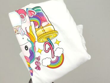 Bluzka damska MYHAILYS - Fason: t-shirt z krótkim, lekko opadającym rękawkiem i półokrągłym dekoltem - Kolor: biały - Wzór: nadruk w pastelowe jednorożce (różowo‑fioletowe akcenty) na całej powier...Stan: