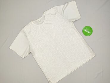 Bluzka damska H&M - Kolor: ecru/śmietankowy - Krój: prosty, lekko wydłużony, rozcięcia po bokach u dołu - Rękaw: krótki - Dekolt: okrągły - Zapięcie: mały guziczek z pętelką z tyłu (łezka) - Mater...