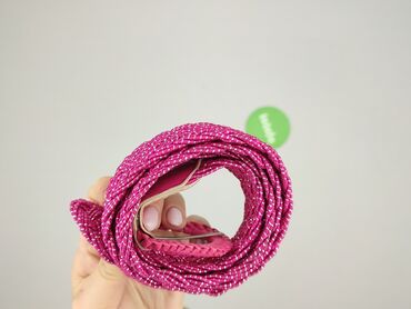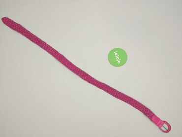 - Konstrukcja: miękka, pleciona taśma tekstylna; zakończenie z różowym skórzanym/ekoskórzanym elementem i metalową klamrą zaczepową
