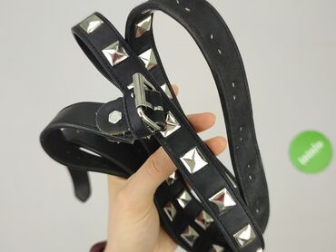 Cienki pasek damski z ozdobnymi ćwiekami - Kolor: czarny - Styl: wąski, elastyczna część w środkowym odcinku ułatwiająca dopasowanie - Wykończenie: dwie strefy z gęsto nabitymi, srebrnymi ćwiekami...
