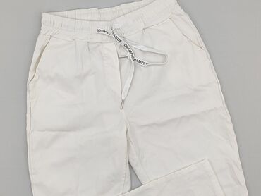 Białe spodnie dresowe/joggery - Krój: zwężane nogawki zakończone ściągaczami - Pas: elastyczny ze ściągaczem, bez widocznego sznurka - Materiał: miękka, średniej grubości dzianina (bawełniana w do...
