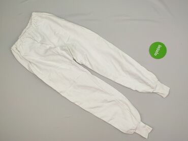 Białe damskie spodnie typu jogger/chinos. - Krój: zwężane nogawki, delikatne przeszycia wzdłuż nogawek optycznie wysmuklające sylwetkę - Stan: średni, talia elastyczna z troczkiem do regulacji - S...