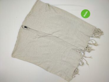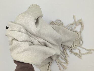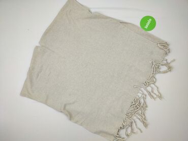- Fason: szeroki szal/ponczo z otworem na głowę, zakończony frędzlami