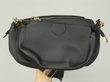 Czarna torba na ramię/nerka typu crossbody - Materiał: skóra ekologiczna (imitacja skóry) w kolorze czarnym, lekko połyskująca - Pasek: szeroki, regulowany, z mocnego taśmowego materiału; możliwoś...