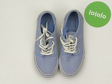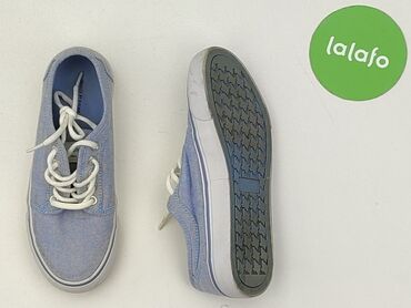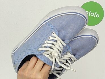 Trampki damskie Cotton Traders - Kolor: niebieski (chabrowy) z białymi detalami - Cholewka: materiałowa (bawełna) - Nosek: gumowy, biały - Podeszwa: gumowa, biała z niebieskim paskiem; bieżnik o w...