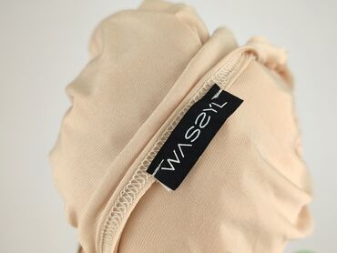 - Konstrukcja: szerokie, marszczone pasy materiału; wszyta gumka z tyłu ułatwiająca dopasowanie do obwodu głowy