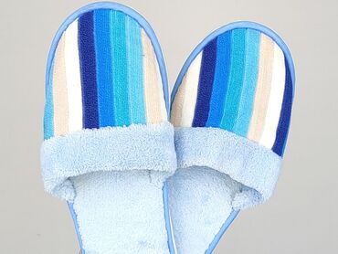 Puszyste kapcie domowe w paski - Model wsuwany, z odkrytą piętą - Kolorystyka: róż, biel i odcienie brązu; dekoracyjne kokardki z różowej satyny na cholewce - Miękka, welurowa cholewka i pluszowa,...Stan: