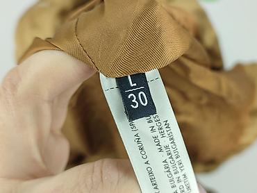 Płaszcz damski JIRGAO, rozmiar L - Krój: trencz/krótki płaszcz z paskiem w talii - Kolor: jasny beż/szampański z delikatnym, lekko satynowym połyskiem - Zapięcie: podwójny rząd dużych guzików z pr...