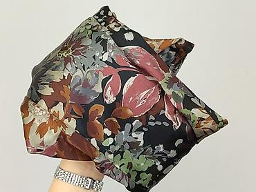 - Wzór: duże kwiaty i liście w odcieniach rudego, różu, zieleni i szarości na ciemnym tle