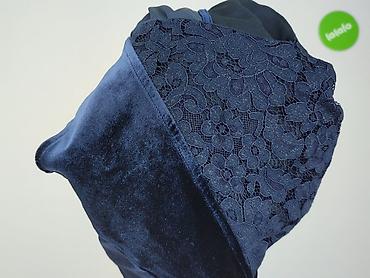- Materiał: miękki, połyskujący welur w kolorze granatowym; wstawki z koronką na plecach.