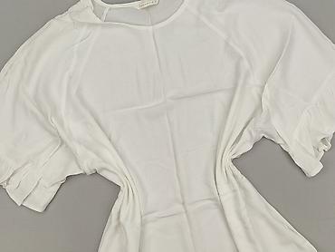 - Fason: luźny, lekko oversize; rękawy krótkie z dekoracyjną, warstwową falbaną