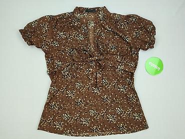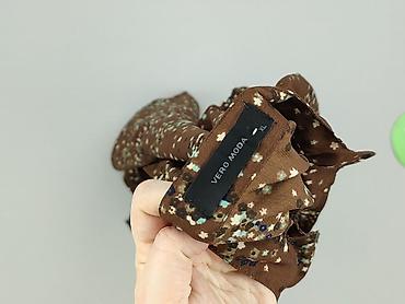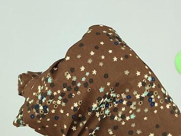 - Wzór: drobne kwiatki/kropki na ciepłym brązowym tle; akcenty beżowe, czarne, niebieskie i miętowe