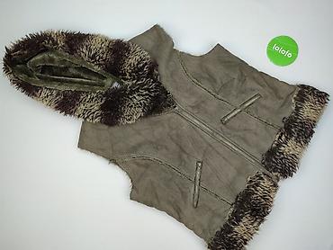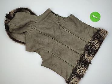 Damska kamizelka z eco futra, kolor oliwkowo‑khaki. Miękka, gęsta imitacja futra z podszewką w kolorze beżowym. - Rozmiar z metki: L/XL - Skład materiału (na metce): 60% akryl, 40% poliester - Kró...