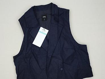 - Fason: krótka kamizelka garniturowa bez rękawów, z klapami; zapinana na jeden guzik