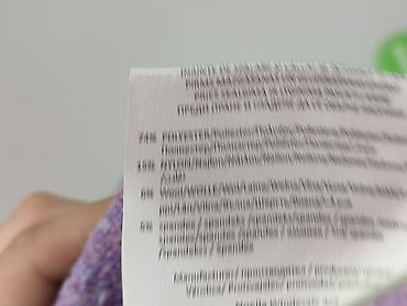 - Materiał: dzianina z domieszką włókien syntetycznych (na metce widoczne m.in. poliester, nylon/akryl; dokładny skład częściowo nieczytelny na zdjęciu), miękka i puszysta w dotyku