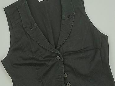 Damska kamizelka garniturowa, kolor czarny, rozmiar M. - Krój: dopasowany, z modelującymi przeszyciami; z przodu zapięcie na 3 guziki, lekko wydłużony dół z delikatnym szpicem. - Tył: regulowany p...