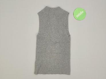 Szary, dzianinowy bezrękawnik/kamizelka damska - Rozmiar: S (metka widoczna na zdjęciu) - Kolor: jasny szary (melanż) - Fason: bez rękawów, zapinany z przodu na dwa duże guziki - Wzór: efektowne w...