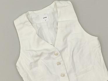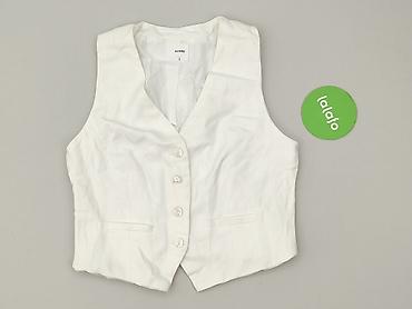 Damska kamizelka WEEKDAY - Model: klasyczna, zapinana na 3 guziki - Kolor: kremowy/ecru - Rozmiar z metki: 40 - Krój: V-neck, lekko wydłużony tył; przód z dwoma listewkowymi kieszeniami - Materiał...