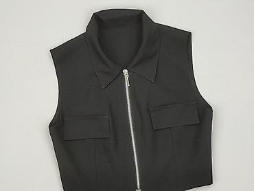 Czarna kamizelka damska BUTON - Fason: bezrękawnik koszulowy, zapinany na guziki z przodu - Kołnierzyk koszulowy - Dwie kieszenie na piersi z patkami i guzikami - Proste, lekko wydłużone boki - Ma...Rozmiar: