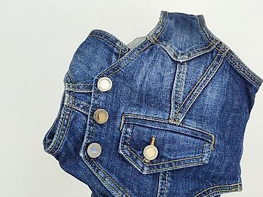 Jeansowa kamizelka bez rękawów - Materiał: klasyczny denim (bawełna jeansowa), średnia grubość, lekko sprany niebieski odcień - Krój: koszulowy, zapinana na guziki na całej długości - Kołnierzyk: ...