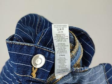 Damska kamizelka jeansowa, rozmiar S - Fason: krótka, dopasowana kamizelka bez zapięcia, z głębokim wycięciem z przodu - Materiał: denim w klasycznym, niebieskim odcieniu z lekkim cieniowaniem - D...