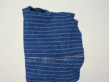 - Wzór: granatowy denim w drobne, jasne paski (pinstripe)