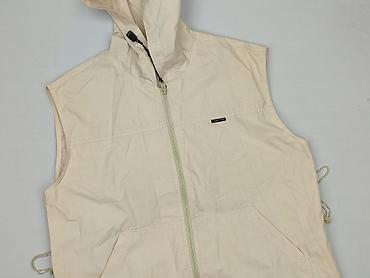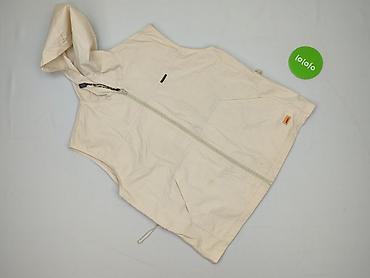 Damska kamizelka z kapturem, bez rękawów, zapinana na guziki z przodu. - Kolor: jasny krem/ekri - Materiał: tkanina o wyczuwalnej, lekko lnianej fakturze (miękka, przewiewna) - Fason: prosty, lekk...