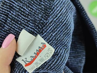 - Materiał: miękka, elastyczna dzianina o drobnym, prążkowanym splocie (melanż granatowo-niebieski)