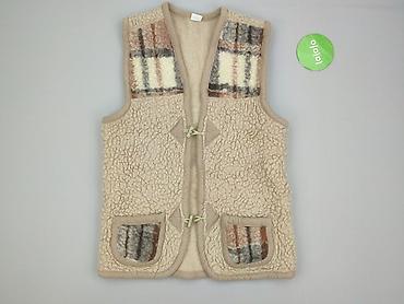 Beżowy bezrękawnik damski, dzianinowy - Klasyczny, gruby splot z ozdobnymi pionowymi warkoczami z przodu - Głęboki dekolt w kształcie litery V - Ściągacze przy dolnej krawędzi - Miękka, przyjemna ...